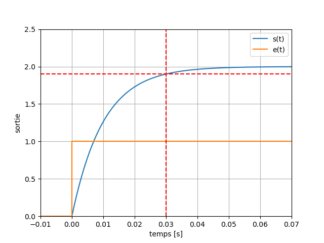Considérons la réponse d'un système de premier ordre à un échelon d'amplitude
