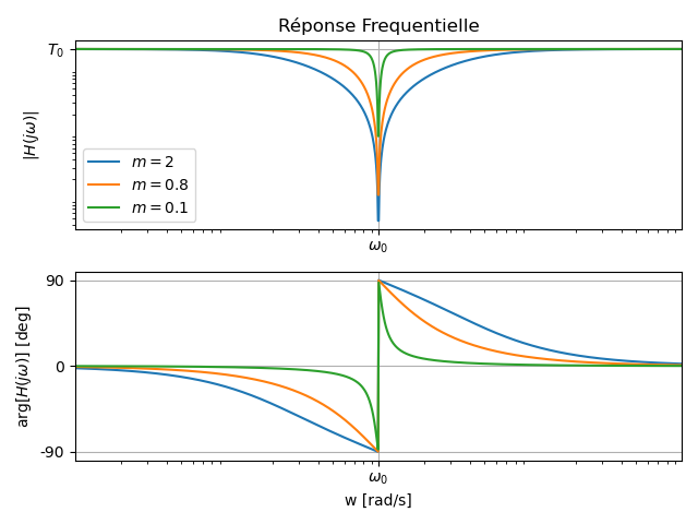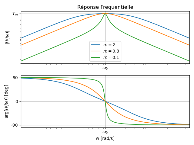 désigne la pulsation propre [rad/s], désigne le coefficient d'amortissement, désigne le facteur de qualité.