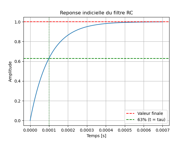 print(f"Constante de temps: tau = {tau*1e6:.2f} us")