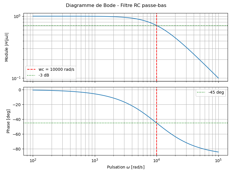 print(f"Pulsation de coupure: wc = {wc:.2f} rad/s")